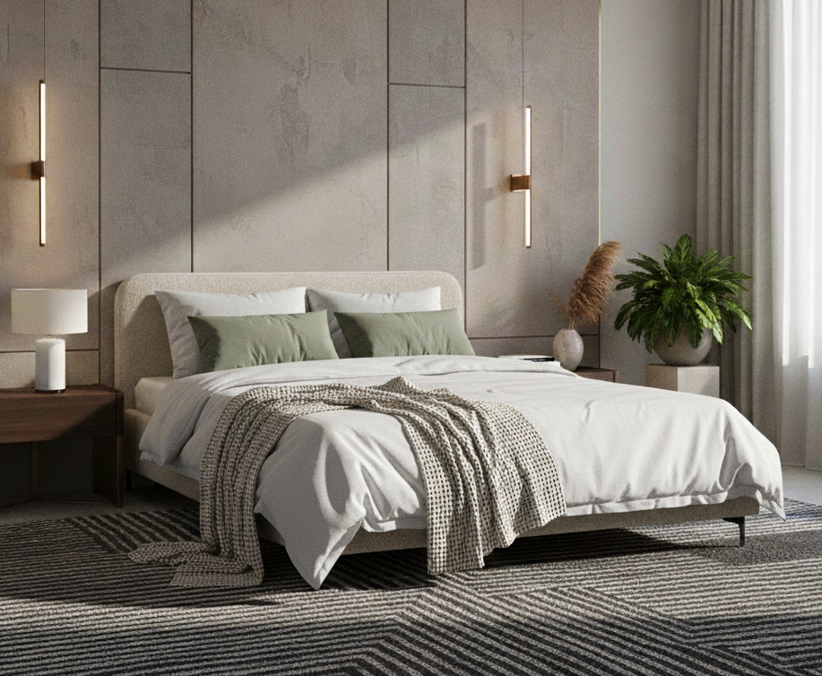 Ліжко Afina – це модель, у якій поєднуються елегантний дизайн і продумана інженерія. М’яке узголів’я створює комфортну зону відпочинку, а стримана геометрія формує гармонійний, сучасний вигляд інтер’єру.