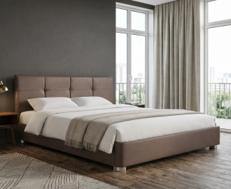 Конструкція ліжка продумана для щоденного комфорту: надійний каркас забезпечує стабільність і довговічність, а відсутність високих опор формує цілісний, «спокійний» силует. Такий дизайн виглядає дорого, не перевантажуючи інтер’єр зайвими деталями.