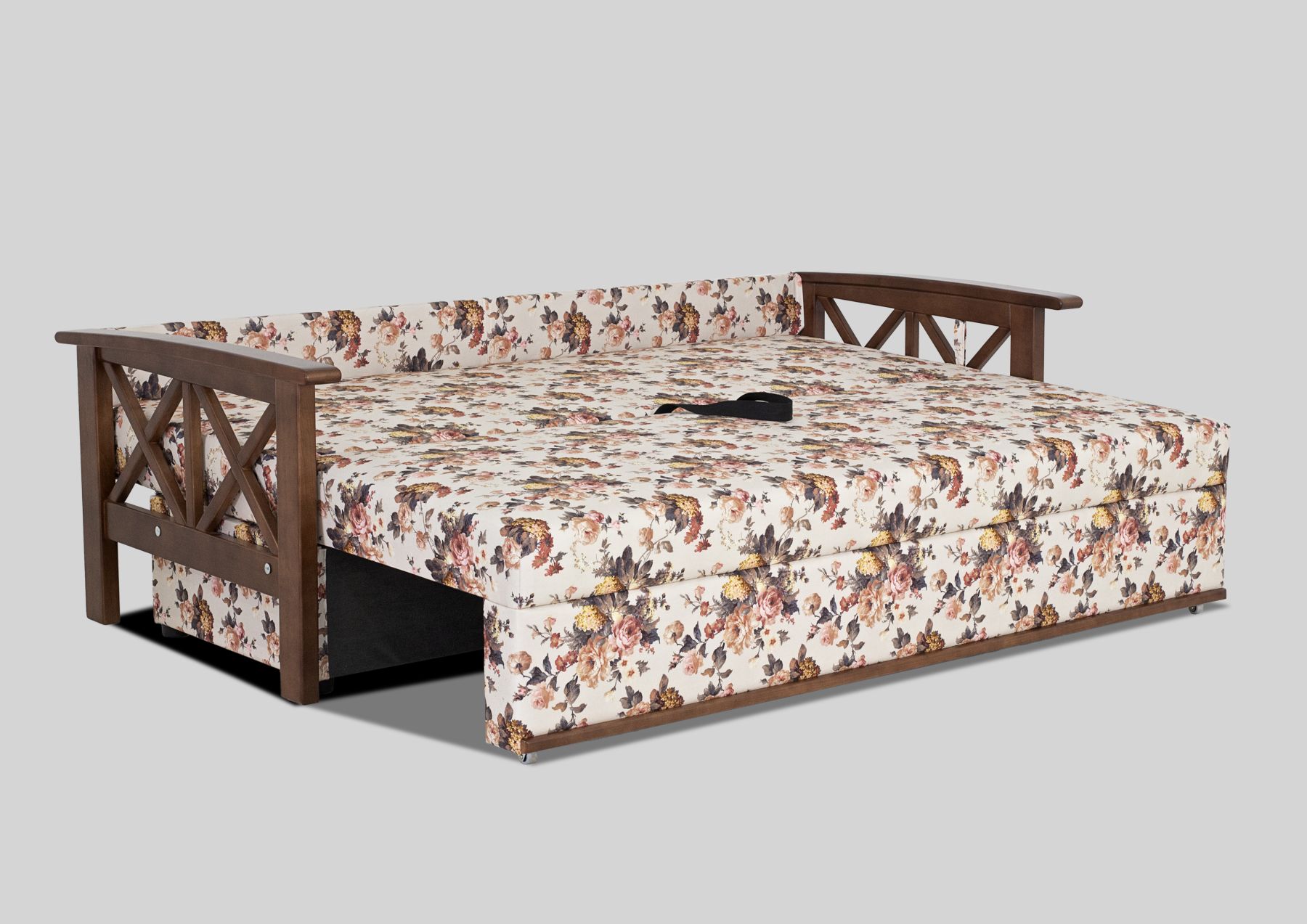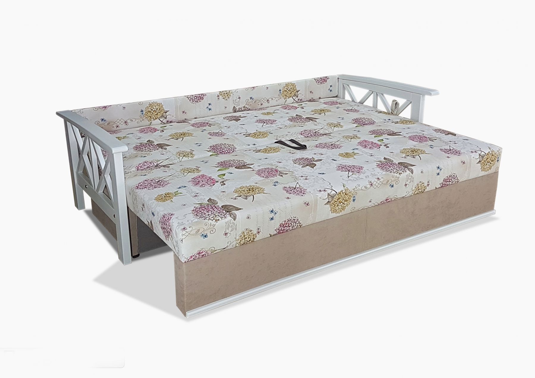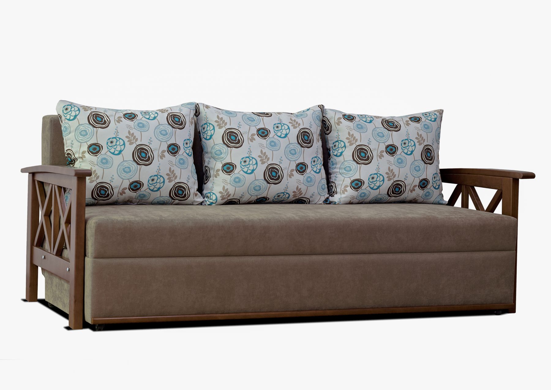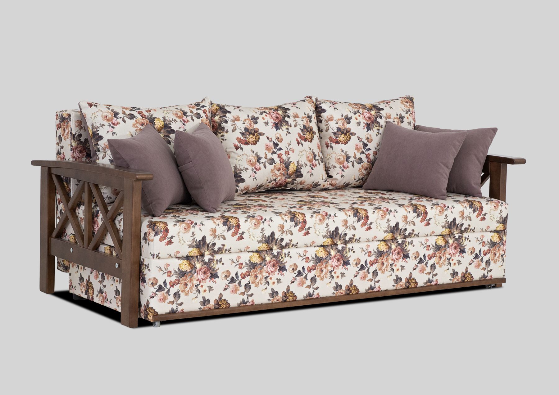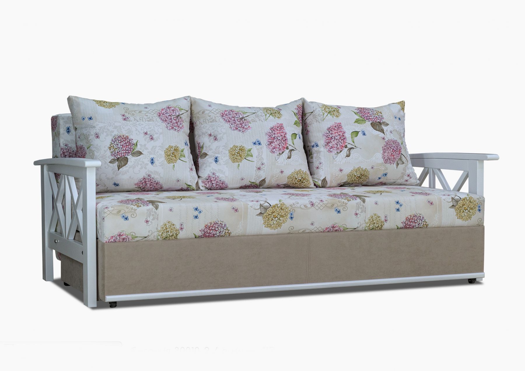Подаруйте своїй кімнаті повітряний стиль французького провансу. Компактний і надійний диван не займе багато місця в приміщенні, зручний механізм розкладки "єврокнижка" легко перетворюється на велике спальне місце. Підлокітники з масиву дерева, колір яких можна варіювати.